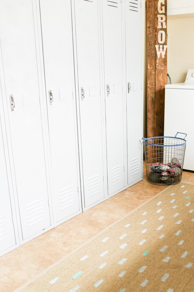 A while back I was looking for a runner length rug for our laundry room but it seemed that everything I found was either more than I wanted to spend, or had a pattern I didn’t love. So we ended up with the Osted Rug from Ikea, added a little paint, and had a neutral rug with just the right amount of color added in! Take a look at just how easy it was to paint a pattern onto this rug.